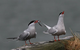 As I write Dublin Bay is seeing more and more terns arrive in from the West-African coast after migrating north to breed on the Irish coastline and at coastal areas throughout Europe. Common Terns Sterna hirundo and Arctic Terns Sterna paradisaea breed within Dublin Bay. Further south Little Terns Sterna Albifrons breed along the North-Wicklow coast and not far off Dublin's coast, north-west Europe's largest Roseate Tern Sterna dougallii breeding colony exists at Rockabill Island. The earliest birds are already prospecting nest sites at these colonies and the first eggs will be laid before long.