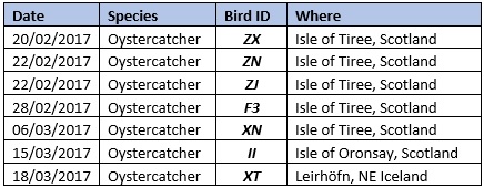Recent International Oystercatcher resighting records