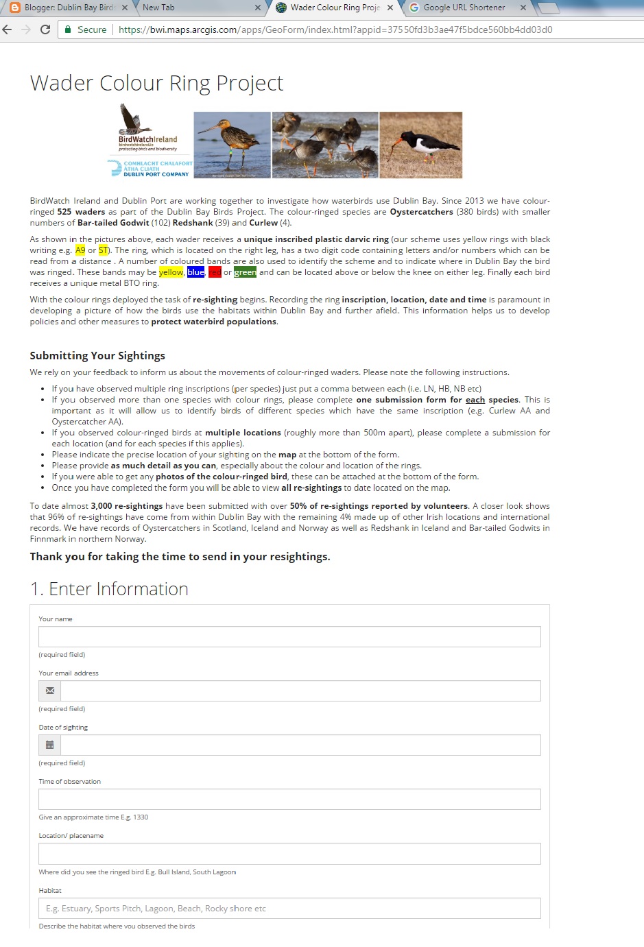 The Dublin Bay Birds Project Team has developed a Web App to capture your colour ring wader resightings.